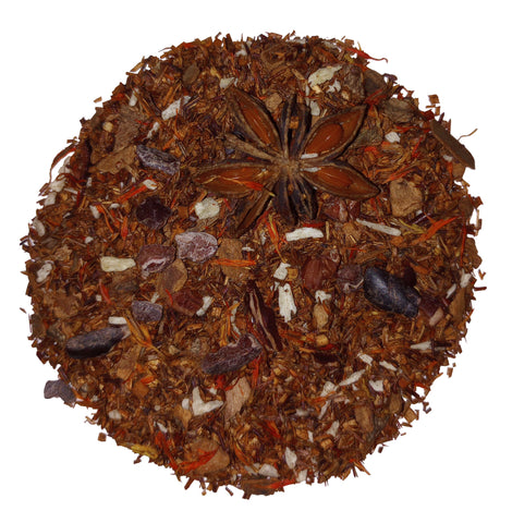 We blend our red rooibos (pron. "roy-bos"), coconut pieces, cacao nibs, anise pods, cinnamon, safflowers and stevia leaf to create a world-class taste sensation.