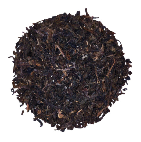 Vintage cake pu-erh can sell for more than the price of a car! This exceptional pu-erh is a dark black medium leaf that when infused creates a deep reddish-brown liquor. At once earthy and nutty-sweet, this pu-erh is much more complex than most. Hints of espresso and acorn. Many steepings with this one.